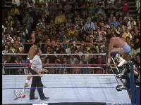 Akeem then tossed Jannetty over the top rope to the floor as Michaels mounted the top turnbuckle again.